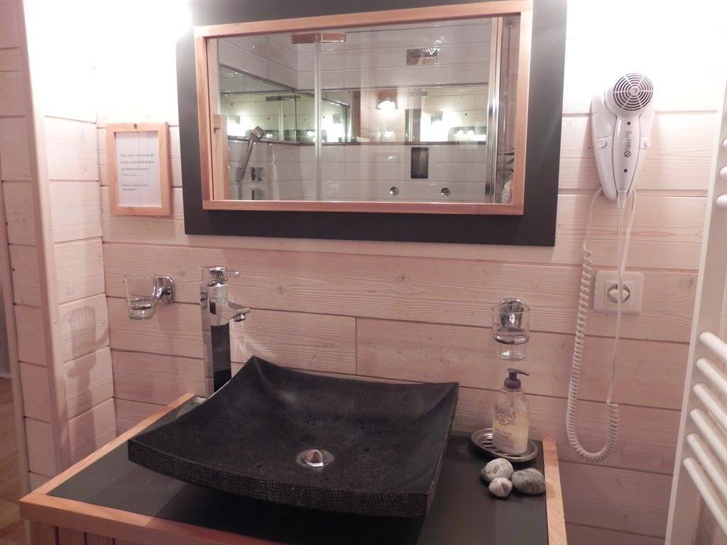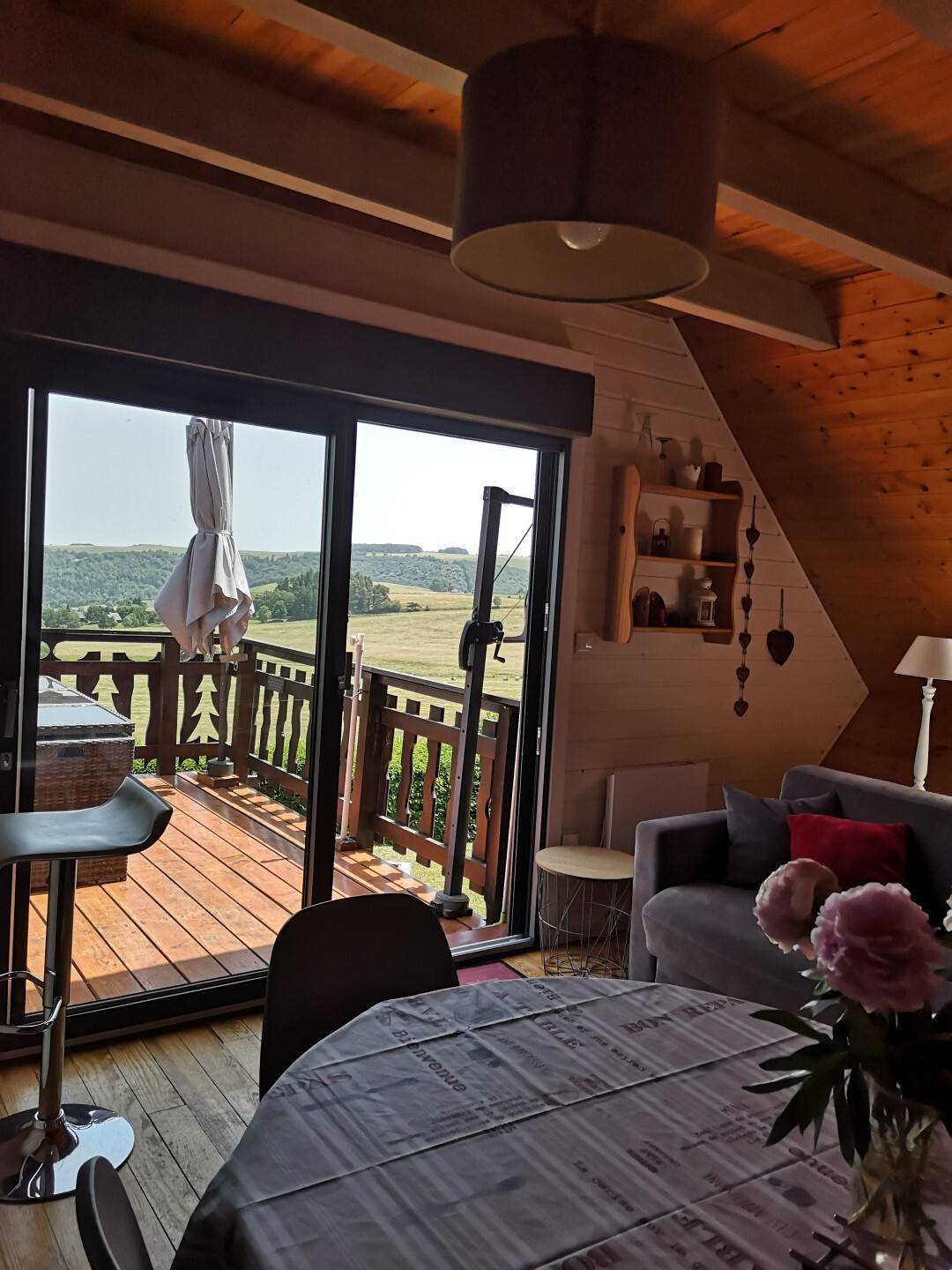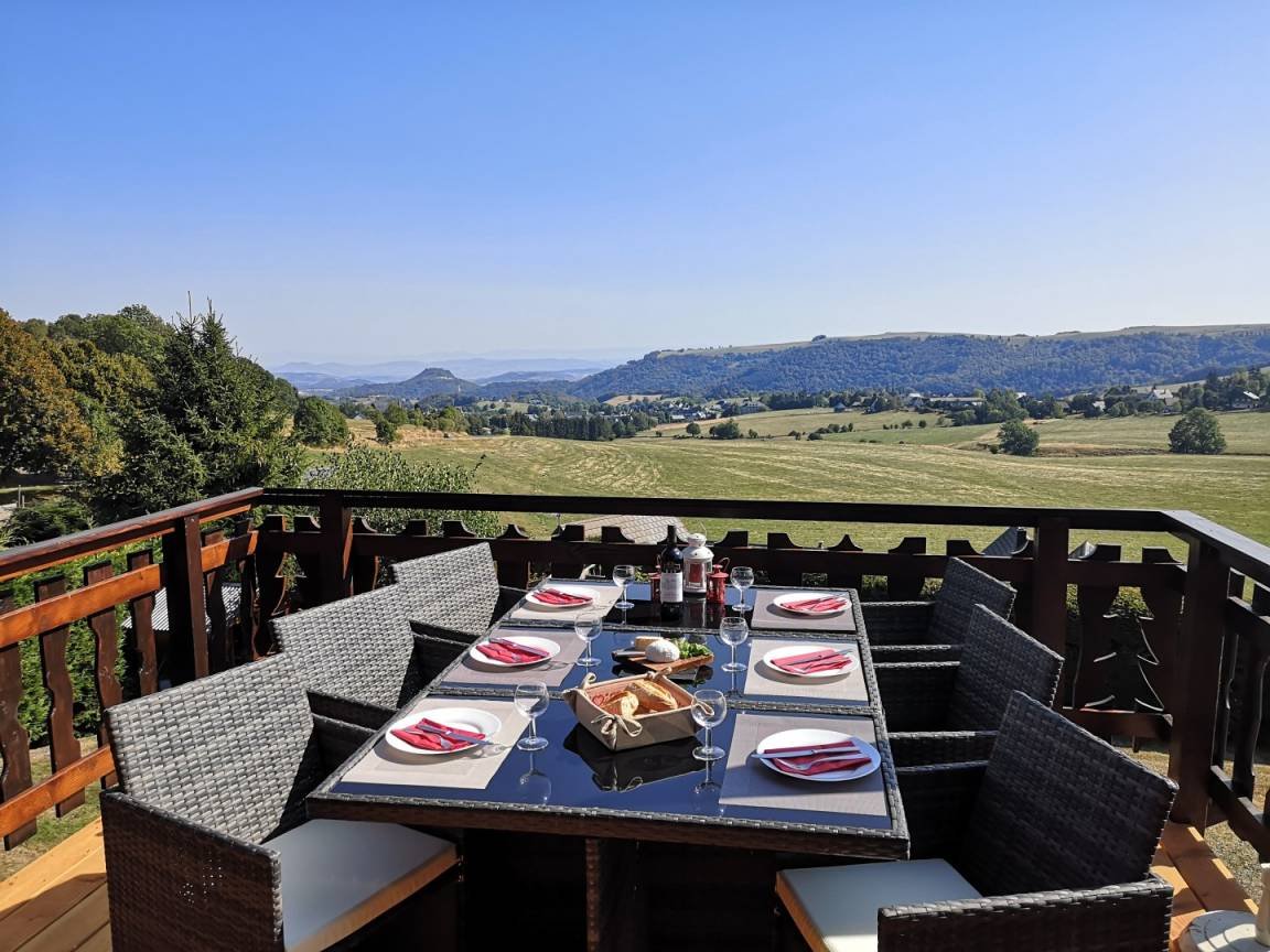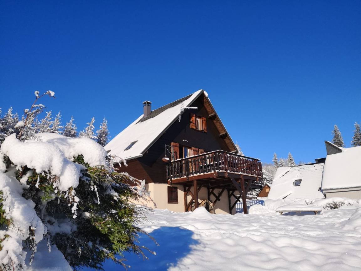 Chalet de montagne individuel en bois, avec vue imprenable sur les monts du Forez. Terrain plat de 600m², terrasse orientée est (lever du soleil) Situé sur la route des pistes de Super-Besse, lotissement LE FAUX, à 1 km de la charmante cité médiévale de Besse-en-Chandesse 63610. A 1 km des pistes de ski de fond et 5 kms de la station de ski de Super-Besse. Navette à 200 m du chalet. Capacité d'accueil 6 personnes maxi enfants compris Superficie 78 m² plus terrasse. Non accessible aux personnes à nobilité réduite SALLE À VIVRE CUISINE OUVERTE : Réfrigérateur/congélateur, plaque vitrocéramique 4 feux, four, lave-vaisselle, four micro-ondes, cafetière, grille-pain, bouilloire, hotte aspirante, vaisselle, couverts, TV écran plat 85 cm, TNT, internet gratuit, radio, lecteur CD, clé USB. Canapé, table, chaises, buffet, poêle à bois (bois fourni) CHAMBRE DU HAUT N°1 Deux lits de 90) TV écran plat, lecteur DVD, bureau, penderie, armoire.(lits de 90 transformables en un grand lit de 180) CHAMBRE N° 2 1 lit de 140 placards penderie sur le palier SALLE D'EAU /WC Cabine de douche avec jets, vasque sur meuble, radiateur, sèche serviettes, sèche-cheveux. CHAMBRE DU BAS (suite avec salle d'eau) Un lit coffre de 140, penderie, communication directe avec la salle d'eau (cabine grand large avec radio, cascade, jets, Hammam) Vasque sur meuble, radiateur, sèche serviettes, sèche-cheveux. TV écran plat. WC : séparé face à la chambre. VESTIAIRE /LOCAL à SKIS CHAUFFE CHAUFFAGE : Radiateurs électriques et poêle à bois (bois fourni et électricité compris dans le prix de la location) CONFORT Bébé lit parapluie, chaise haute, petit pot. Sécurité : chalet équipé de détecteur de fumée et de monoxyde de carbone
